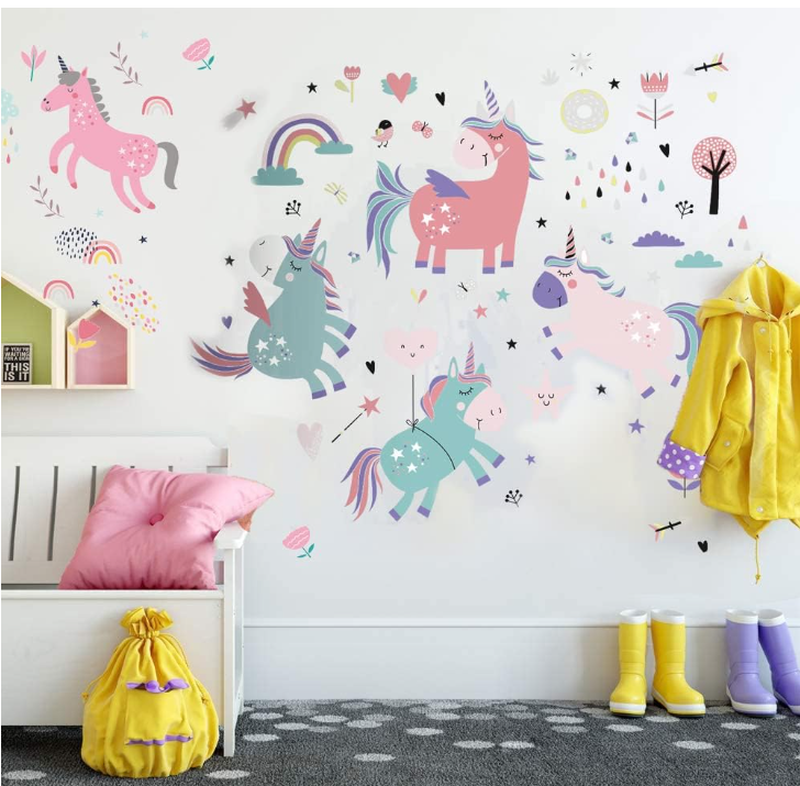 Wall decals are like instant joy on command. They're rental friendly, and easy to apply. Not to mention that they let you transform your child’s room without committing to a full-on paint job (because let’s be real, no one has time to repaint when she changes her favorite color every other week).